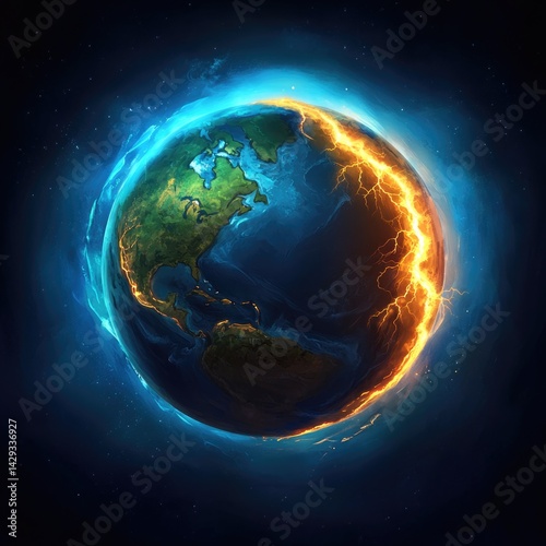 © LK, Fototapeta premium Surrealistic Earth with Lightning