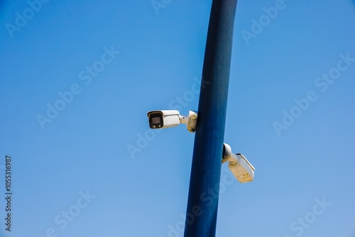 Fototapeta premium Surveillance camera video equipment for security system and detection of violations of society, zone control