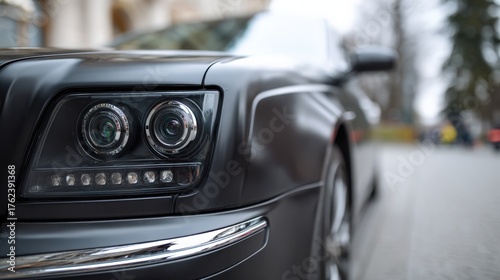 © Justlight, Fototapeta premium Surveillance cameras mounted discreetly on a luxury limousine clear focus on camera lenses with the vehicle and surroundings softly blurred.