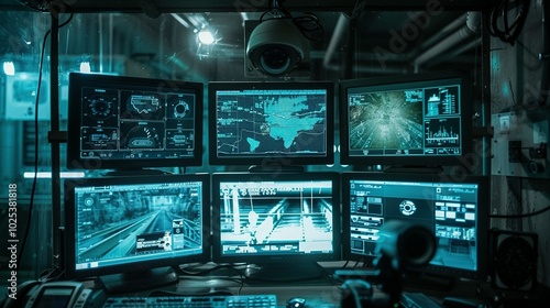 © Armando, Obraz premium Surveillance Quad Screen Display