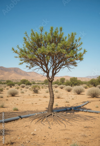 © Paozaa, Fototapeta premium Survival of a lone tree in the desert arid landscape nature photography calm environment ground-level view resilience concept