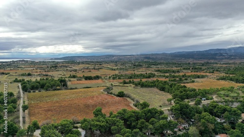© Lotharingia, Obraz premium survol des vignobles dans les Corbières au soleil couchant