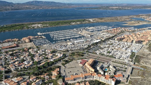 © Lotharingia, Fototapeta premium survol du littoral de l'Aude de Leucate-plage à port-Leucate