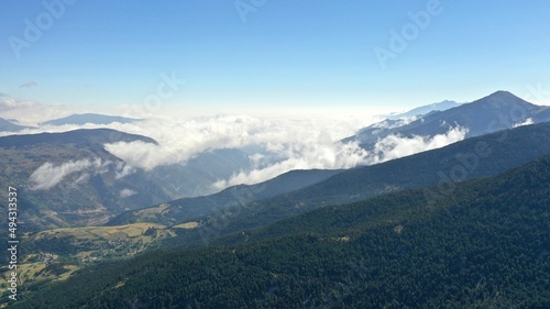 Fototapeta premium survol du massif des Pyrénées et des forets dans les Pyrénées-Orientales, sud...