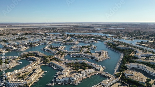© Lotharingia, Obraz premium survol du port de plaisance de port Camargue en Occitanie dans le sud de la France