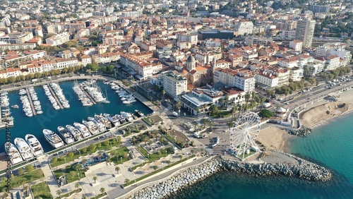 © Lotharingia, Fototapeta premium survol du port de plaisance de Saint-Raphaël dans le Var et de la plage