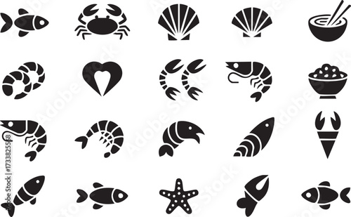 © MD.sahadat, Fototapeta premium Sushi and seafood vector pack with bowls, shrimp, and fish for menu design