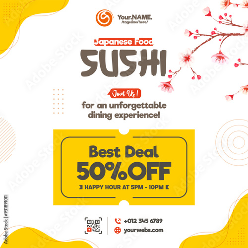 Obraz premium Sushi restaurant square flyer template