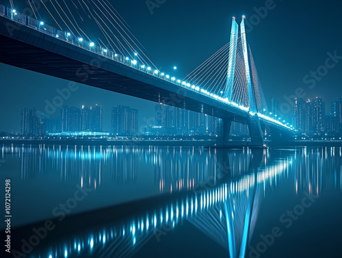 © fast high definition, Fototapeta premium suspension bridge at night