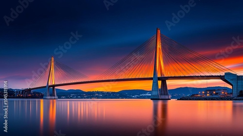 © lnwAI, Obraz premium Suspension bridge at sunset