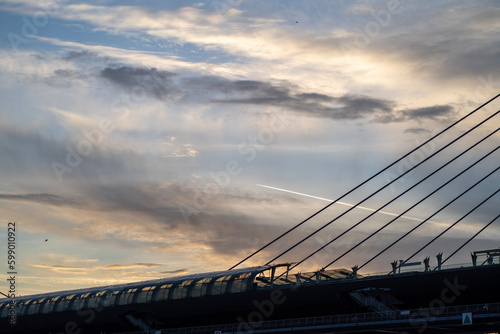 Obraz premium suspension bridge at sunset