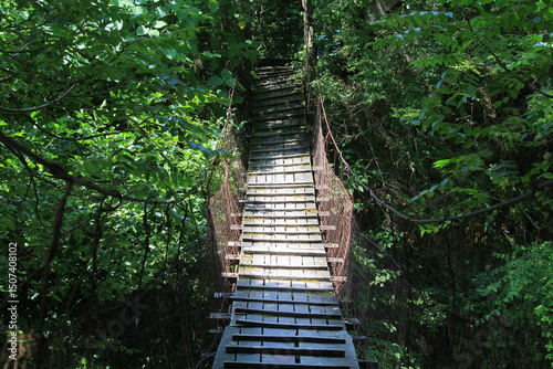 Fototapeta premium suspension bridge in green forest