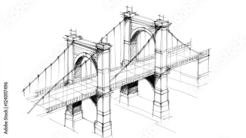 Obraz premium Suspension Bridge Line Drawing: A meticulous line drawing of a majestic...