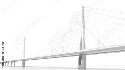 © evannovostro, Naklejka premium Suspension bridge perspective view, digital model isolated on white