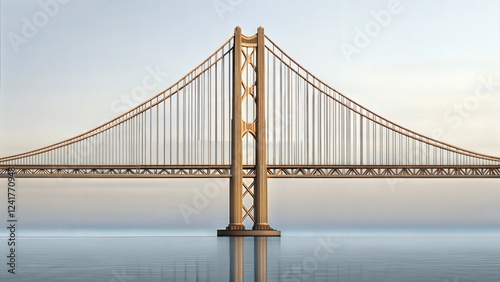Naklejka premium Suspension bridge structure coastal location architectural image tranquil...