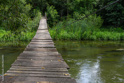 © Oleh Marchak, Fototapeta premium Suspension bridge, walkway to the adventurous, cross to the other side