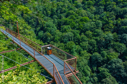 © dudlajzov, Fototapeta premium Suspension tourist walkway at Okatse canyon in Georgia