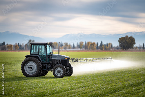 © Irina B, Fototapeta premium Sustainable agricultural irrigation system using natural gas for eco-friendly farming practices in scenic field