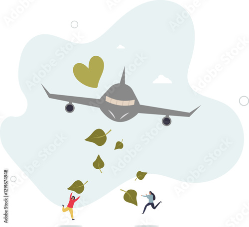 Obraz premium Sustainable aviation fuel for green aircraft power.Plane with environmental and nature friendly energy for engines.flat character life .
