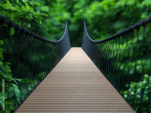 © Green Creator, Obraz premium Sustainable bridge design made from recycled materials, spanning a river with a pedestrian walkway, recycled bridge, eco-infrastructure