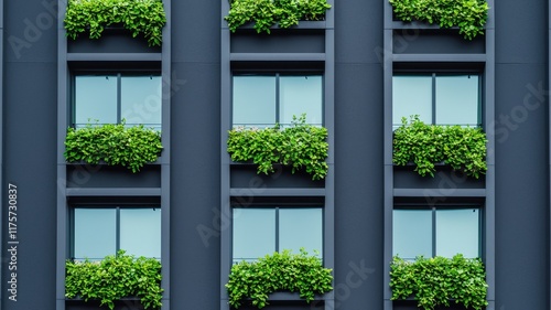Fototapeta premium Sustainable business practices corporate office with vertical gardens and solar panels in urban environment