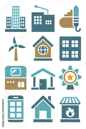 © Xihan, Fototapeta premium Sustainable City Icons: Vector Set for Eco-Friendly Initiatives