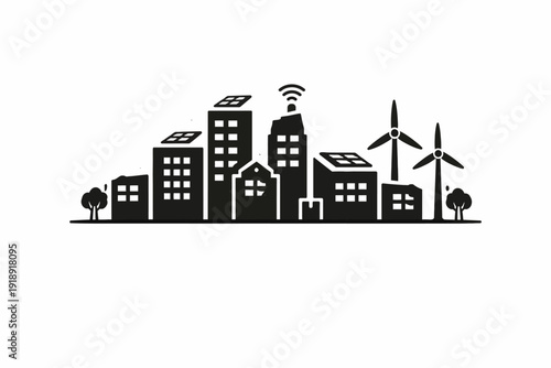 © MstRumana, Obraz premium Sustainable cityscape with solar panels and wind turbines