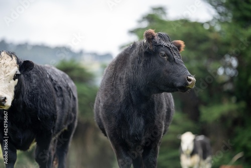Fototapeta premium Sustainable cows in a meadow. Portrait of a cow in a field