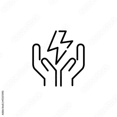 Obraz premium Sustainable eco friendly power symbol. Lightning in hands. Pixel perfect,...