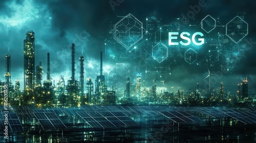 Fototapeta premium Sustainable energy transition in industrial landscape with esg focus