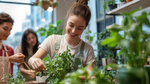 © AlgoCreative, Obraz premium Sustainable living space featuring home garden, eco friendly plants, and joyful gardening activities