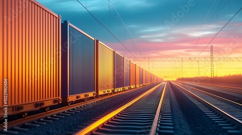 © Petchladda, Obraz premium Sustainable shipping containers being loaded onto an electric train