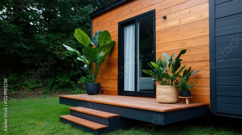 Fototapeta premium Sustainable tiny home with minimal interior design and efficient space usage,...