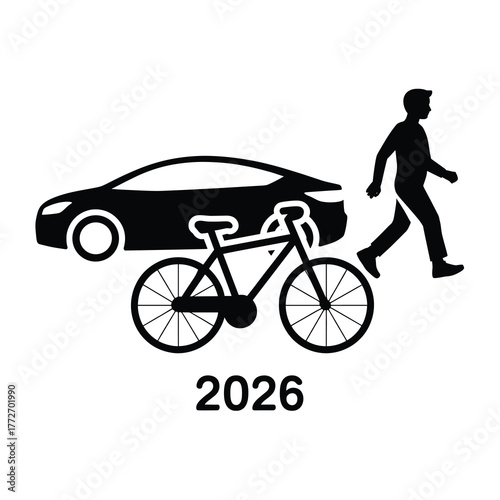 © Lamiya, Fototapeta premium Sustainable Transport Icons Green Lifestyle 2026 Silhouette