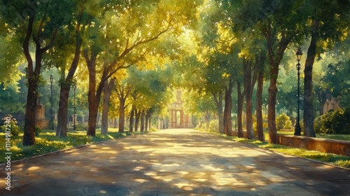Fototapeta premium Sustainable Urban Design with Greenery and Efficient Architecture in a Tranquil Cityscape