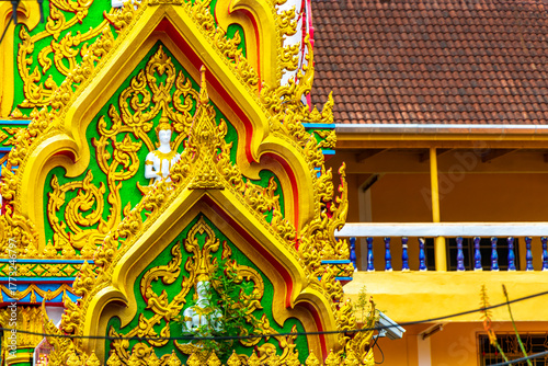 Obraz premium Suwankeereewong Temple wat golden Buddhist architecture details in Patong Thailand.