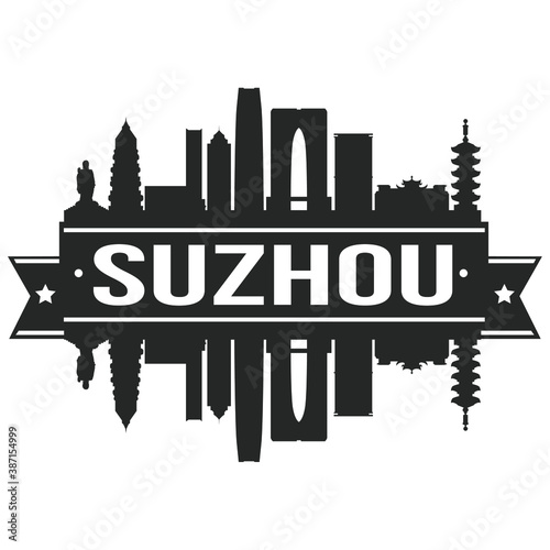Fototapeta premium Suzhou China Skyline Silhouette City Vector Design Art Stencil.