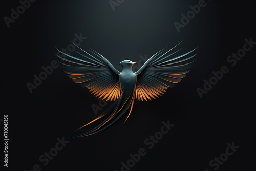 © Alexandra, Fototapeta premium Swallow bird abstract black and golden color logo. Generative Ai