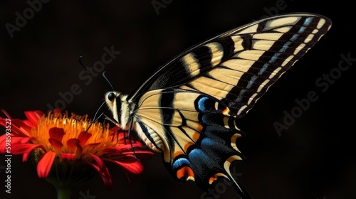 Fototapeta premium Swallowtail butterfly drinking nectar from a flower. Generative AI