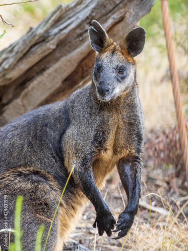 © wrightouthere, Naklejka premium Swamp Wallaby (Wallabia bicolor). A unique Australian macropod with a dark black-grey coat with a distinctive light-coloured cheek stripe.