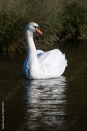 © Mike, Fototapeta premium Swan and its reflection on a sunny autumn morning