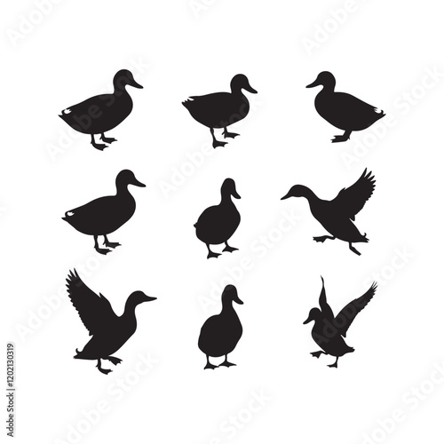 Fototapeta premium swan birds animals goose cartoon character icon set collection silhouette vector art flat design illustrations