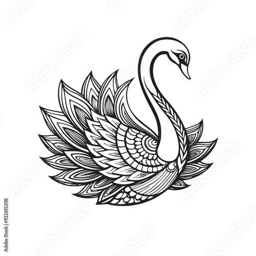 © Nahid, Fototapeta premium Swan coloring page mandala art design