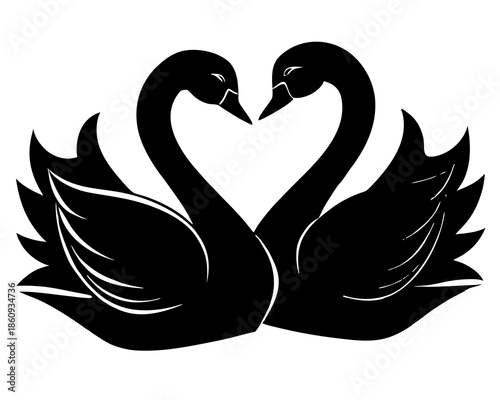 © tanvir, Fototapeta premium Swan couple silhouette vector illustration isolated on white background