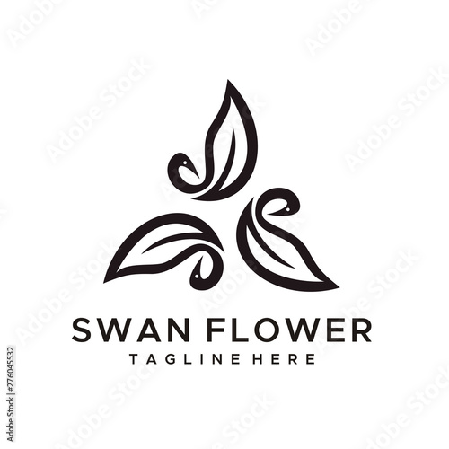Fototapeta premium Swan flower logo design vector minimalist style