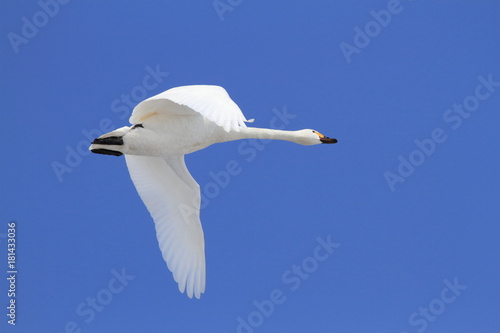 Fototapeta premium 飛ぶ白鳥 青空バック Swan flying