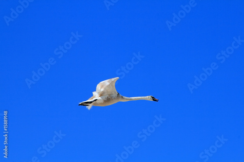 © remik44992, Fototapeta premium Swan flying against the blue sky