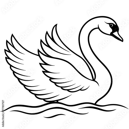Obraz premium Swan gliding on water with detailed feather patterns and graceful lines vecto