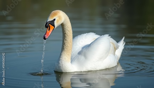 © SwathiFX, Fototapeta premium Swan gracefully gliding on serene water
