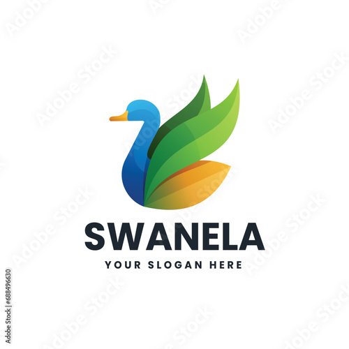 © yuanesei, Fototapeta premium Swan gradient colorful logo vector icon illustration